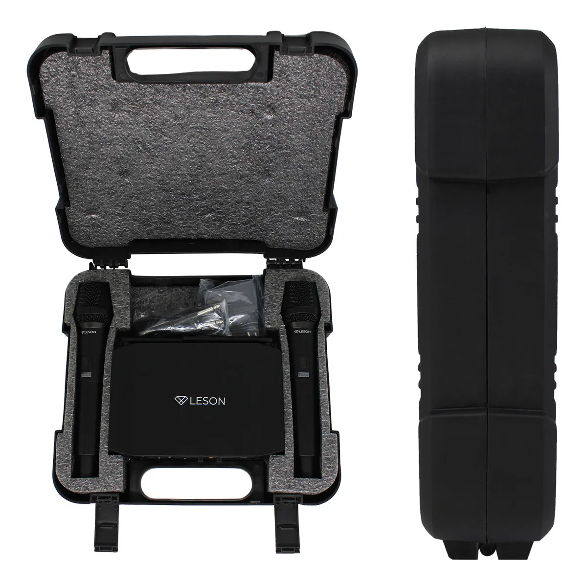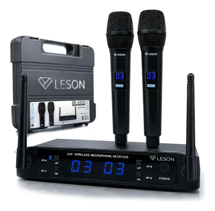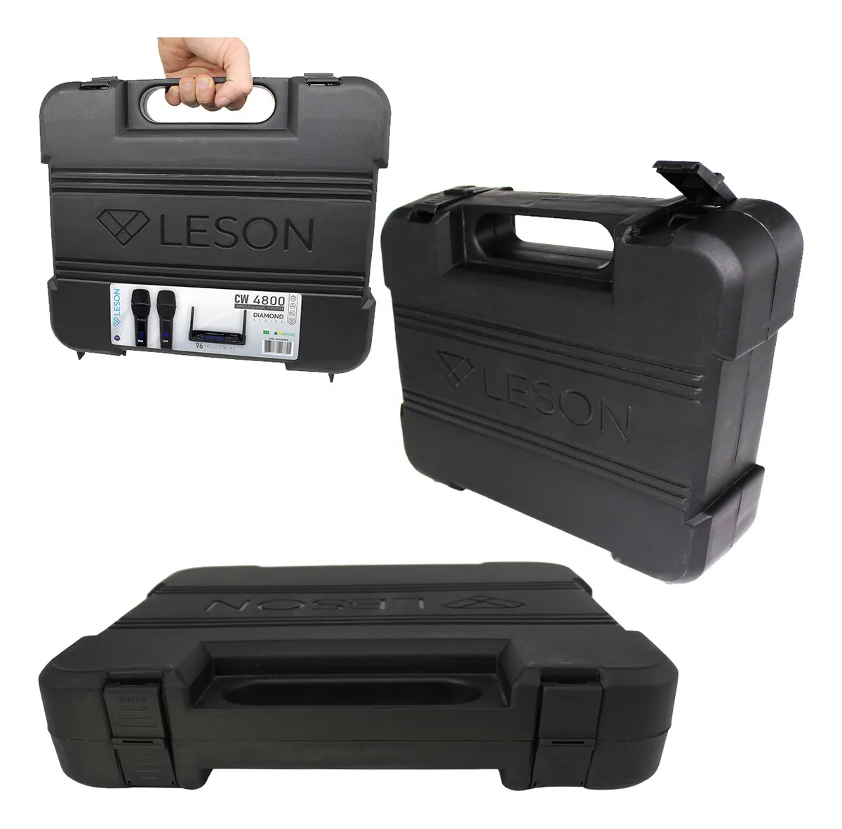 Microfone Sem Fio Duplo Le son CW4800 96 frequencias Dinâmico Digital Igreja Profissional Uhf bivolt saida balanceada alcance 50 metros com maleta de transporte
